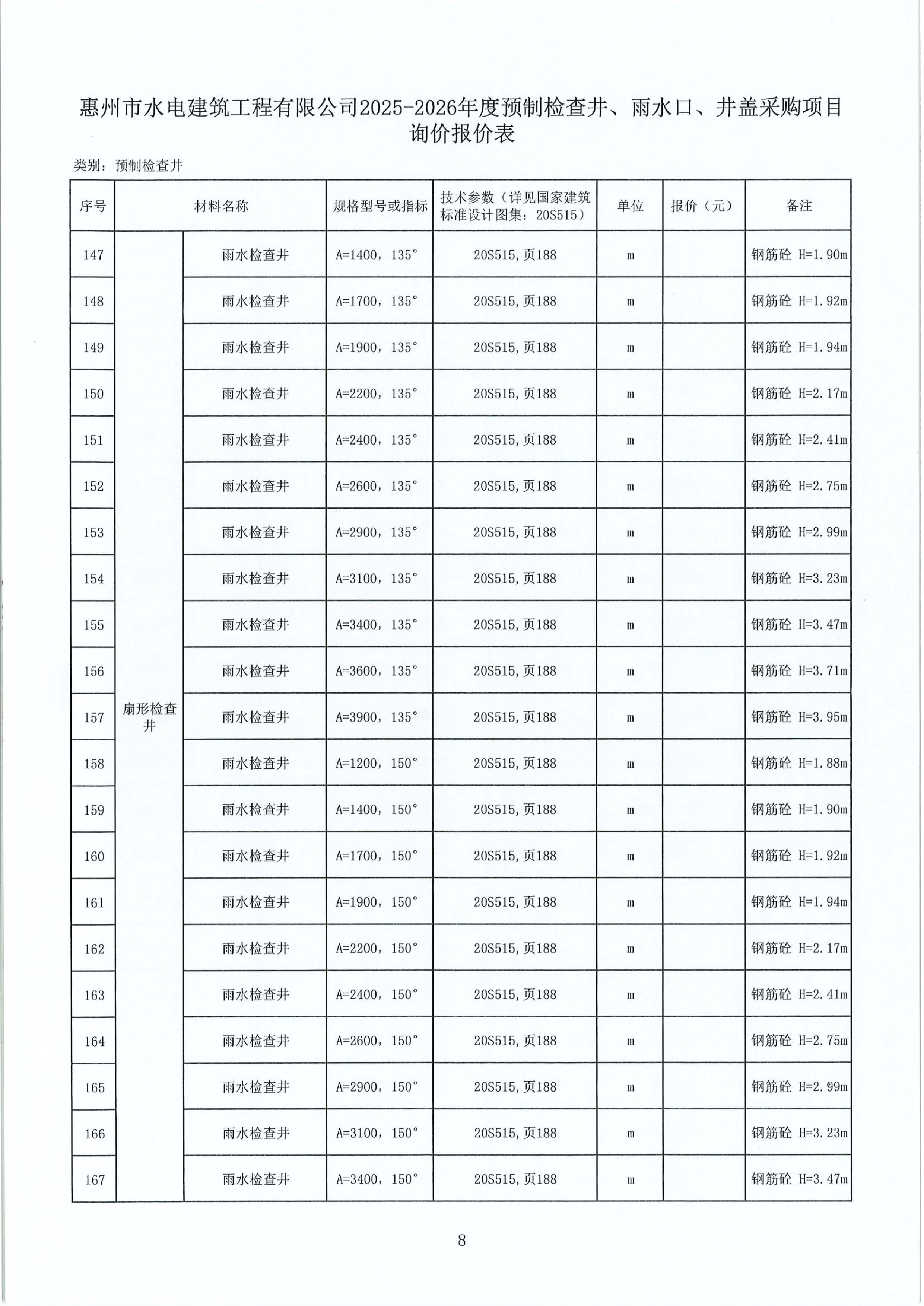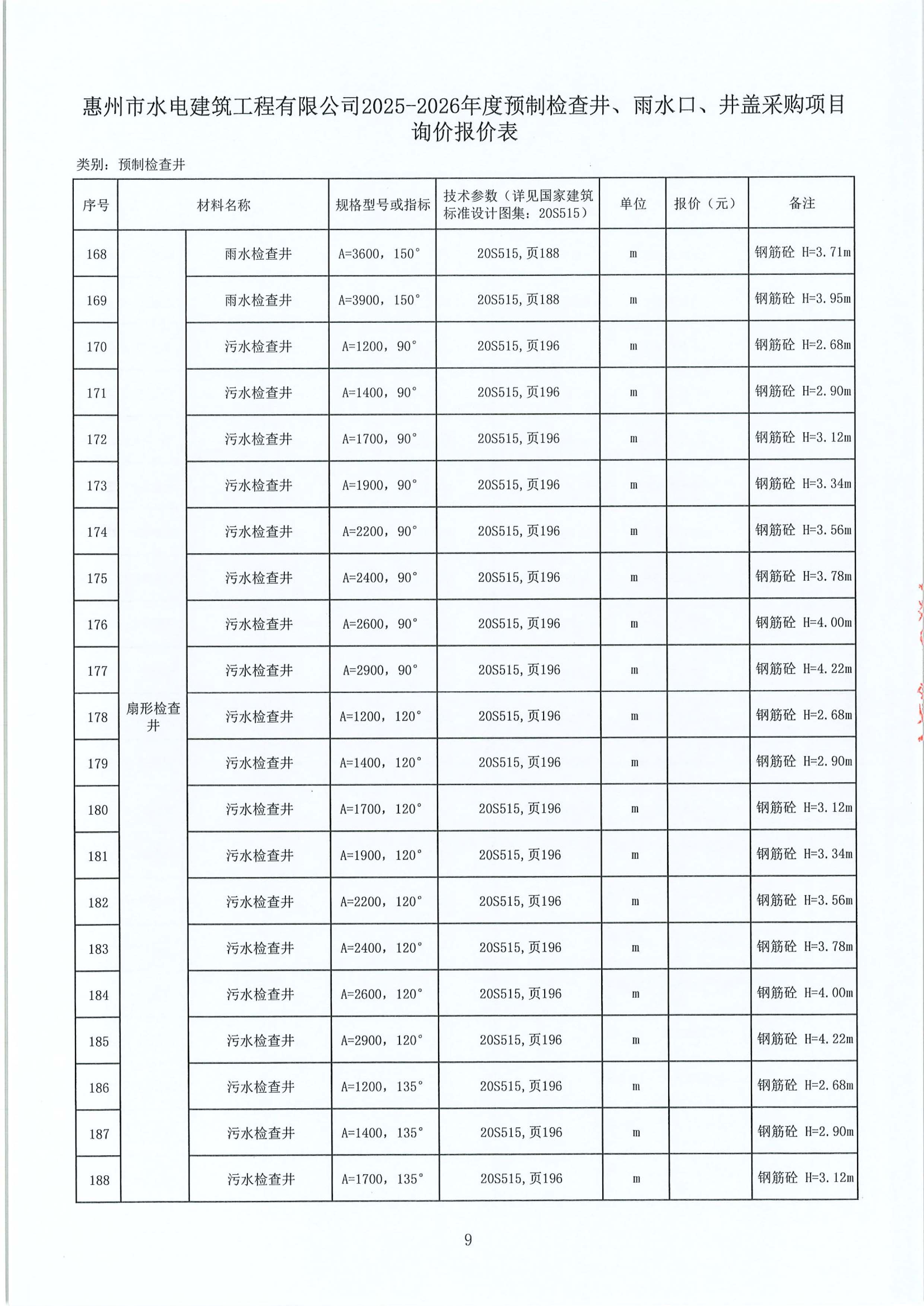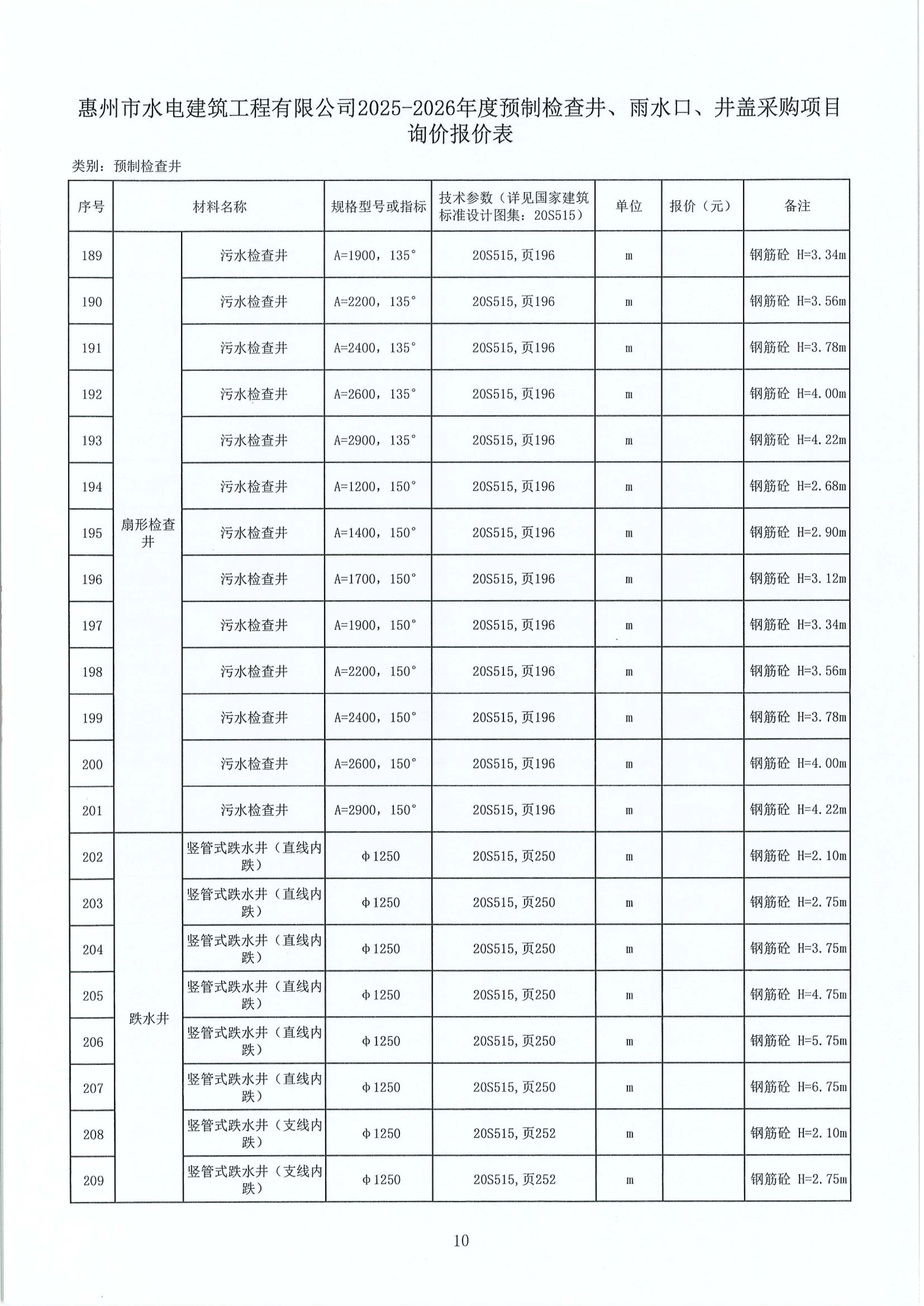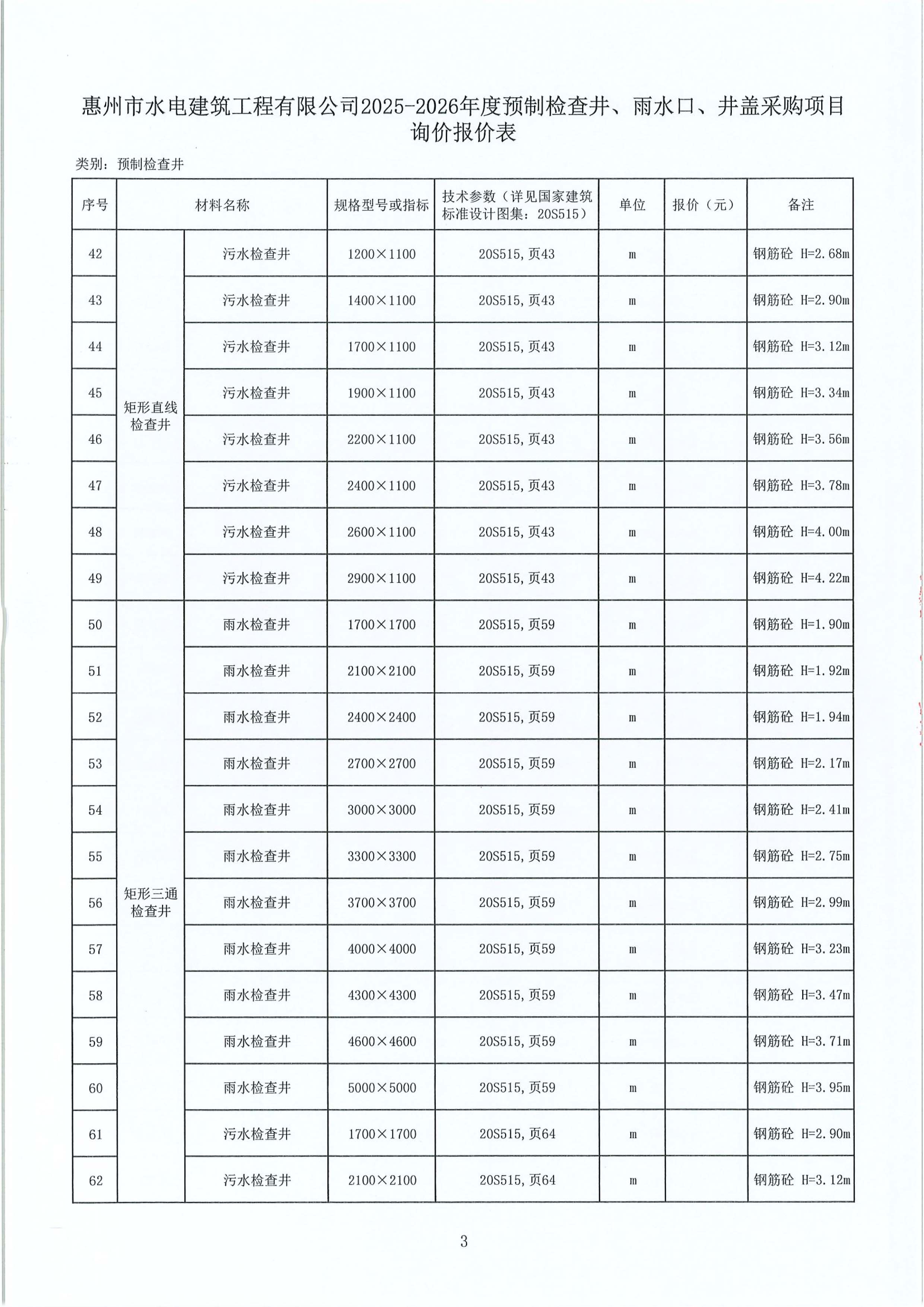 惠州市水電建筑工程有限公司2025-2026年度預(yù)制檢查井、雨水口、井蓋采購項目詢價公告附件: