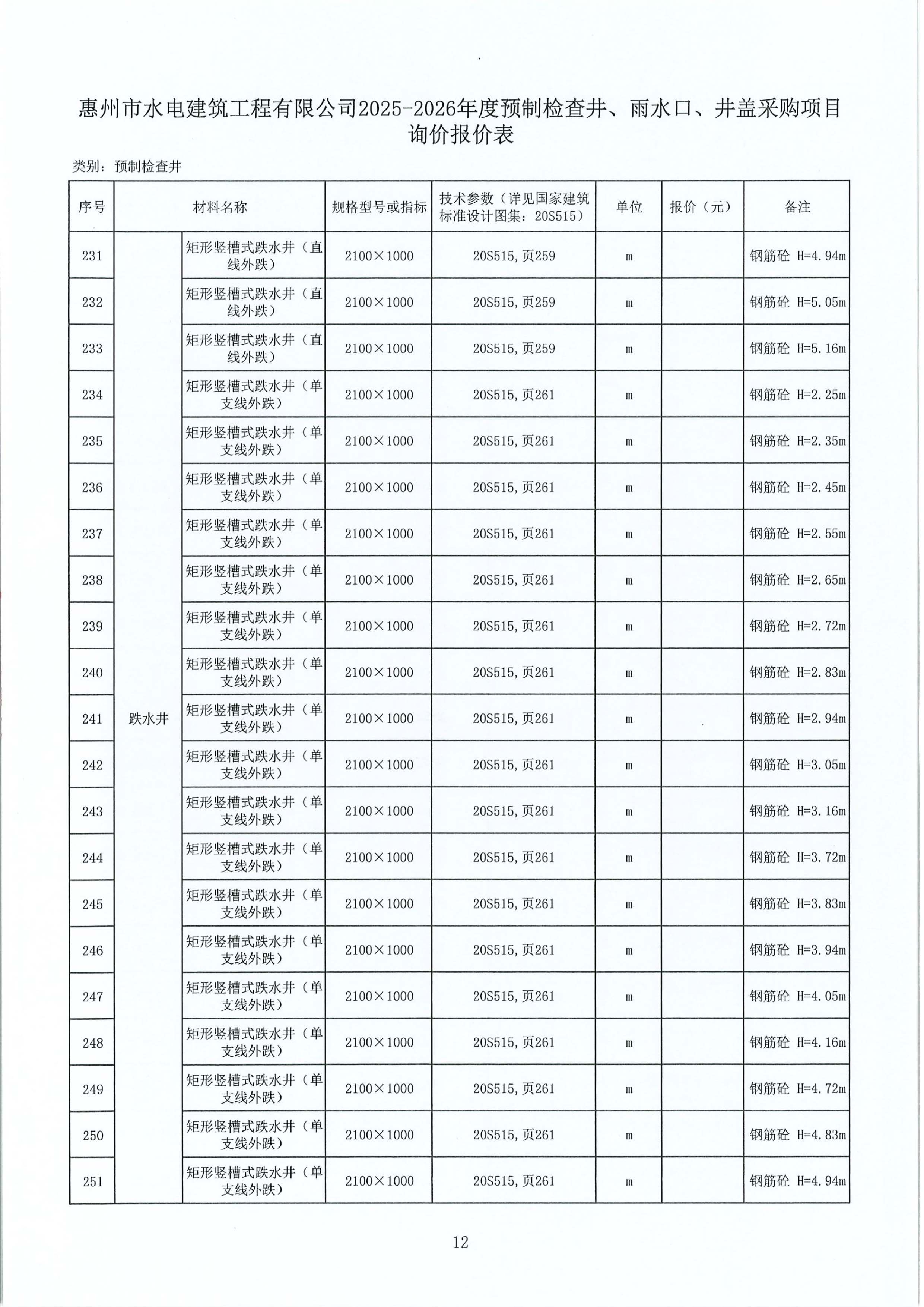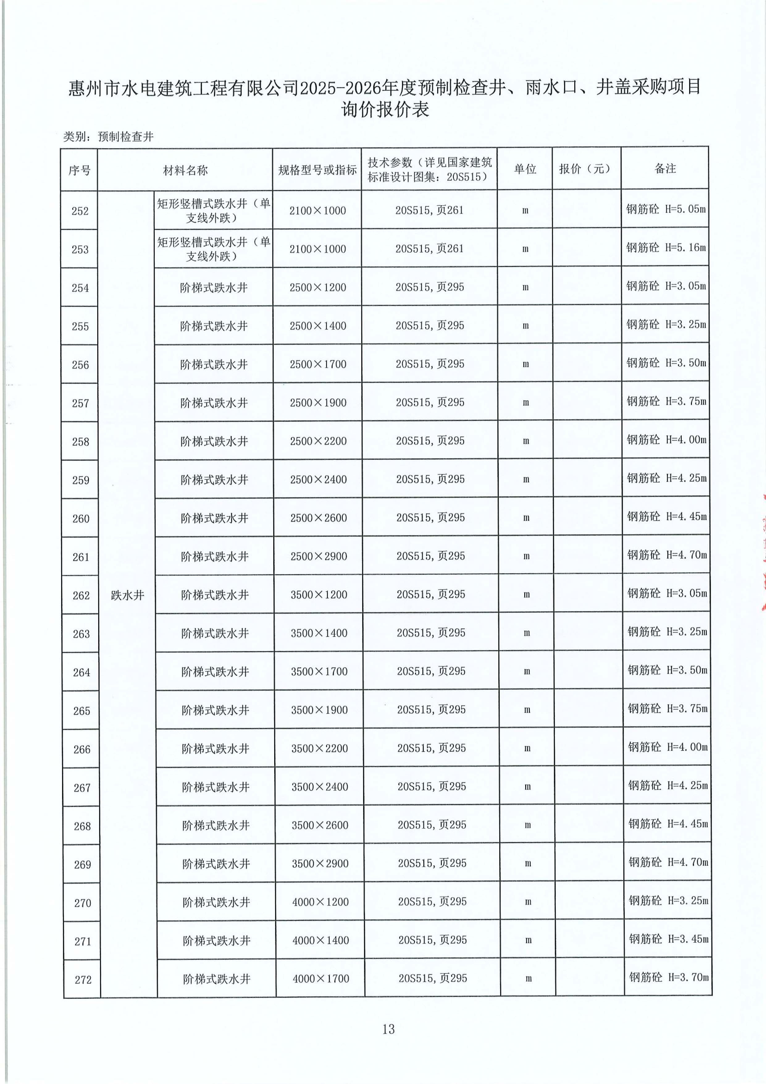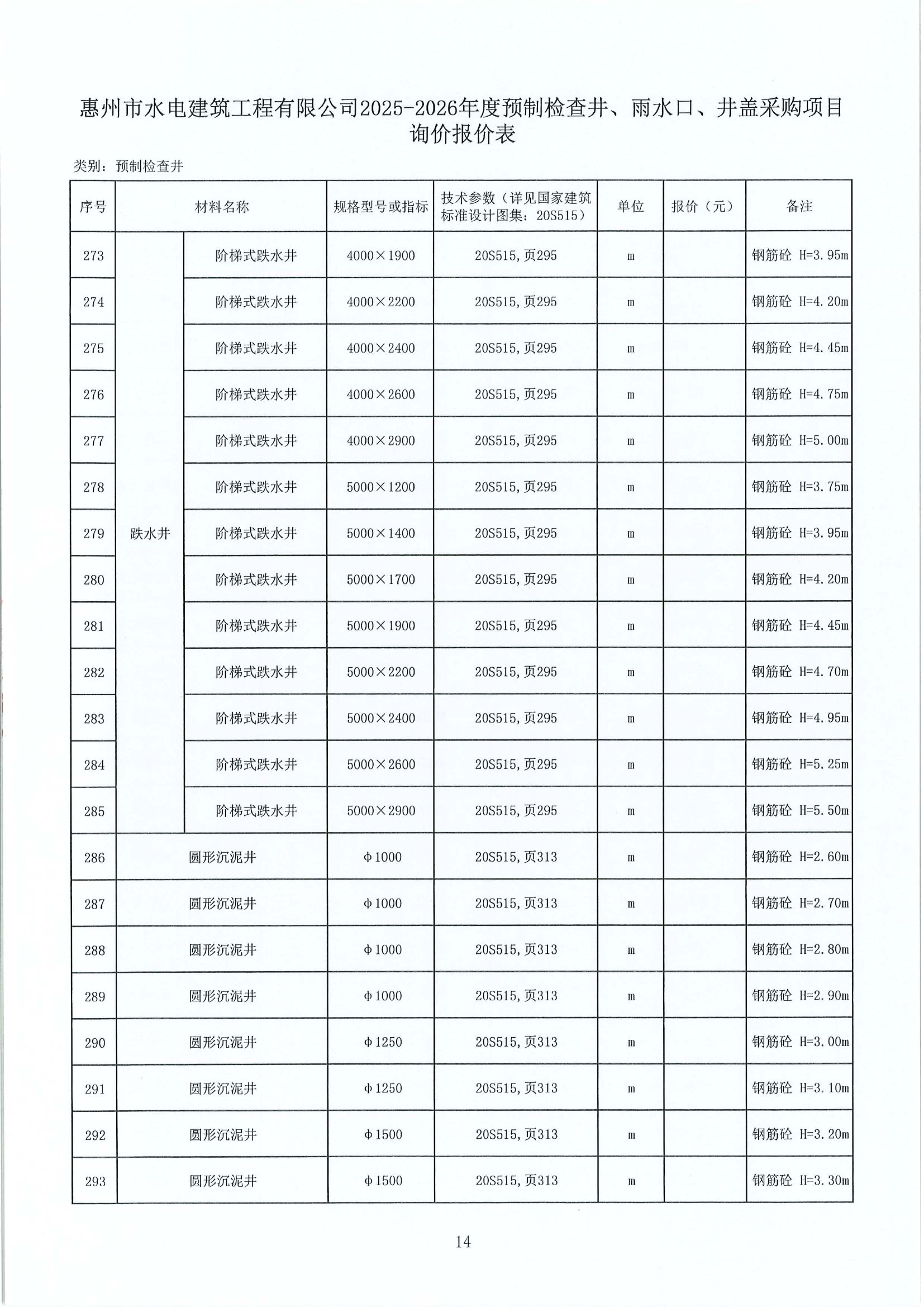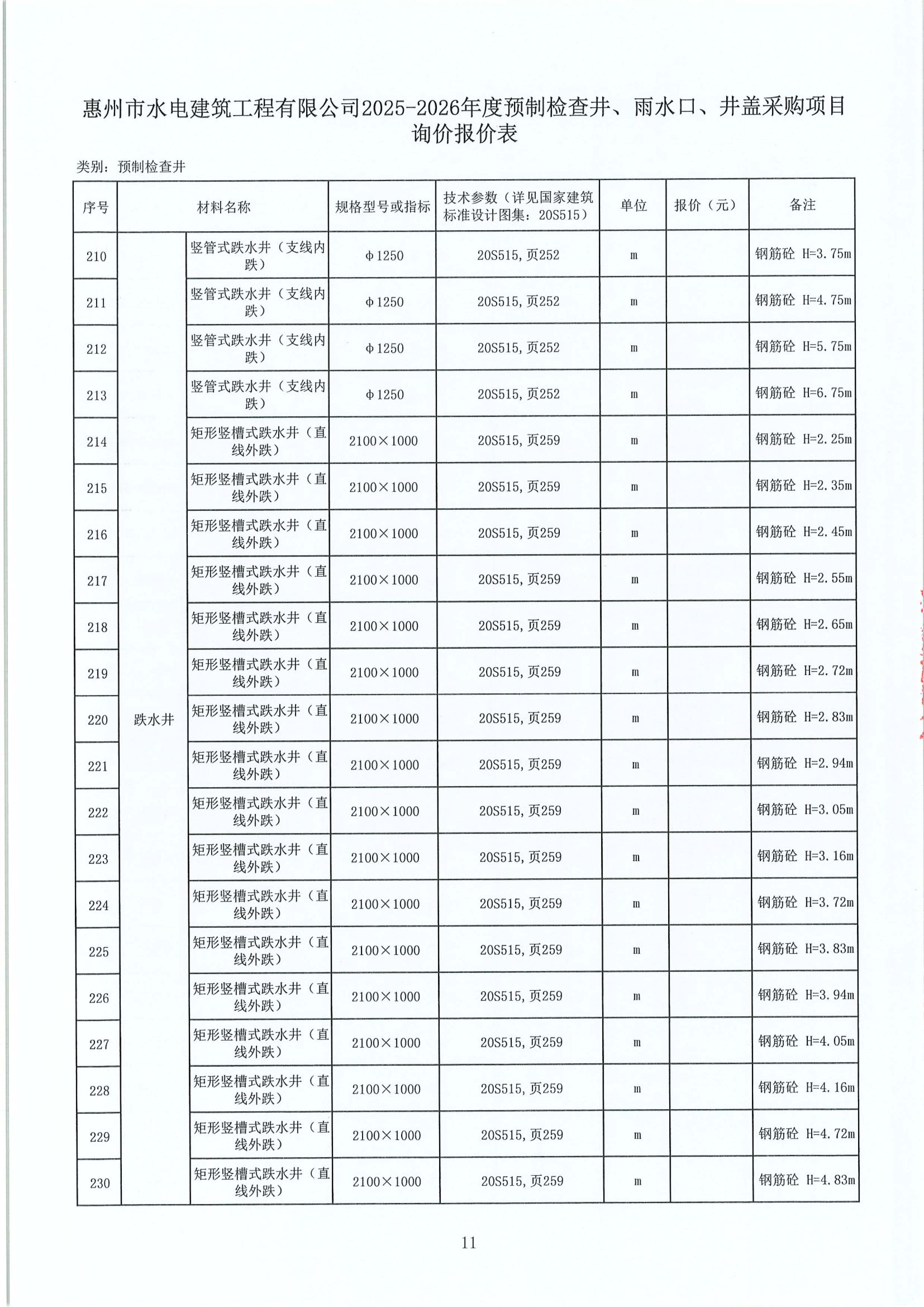 惠州市水電建筑工程有限公司2025-2026年度預(yù)制檢查井、雨水口、井蓋采購項目詢價公告附件: