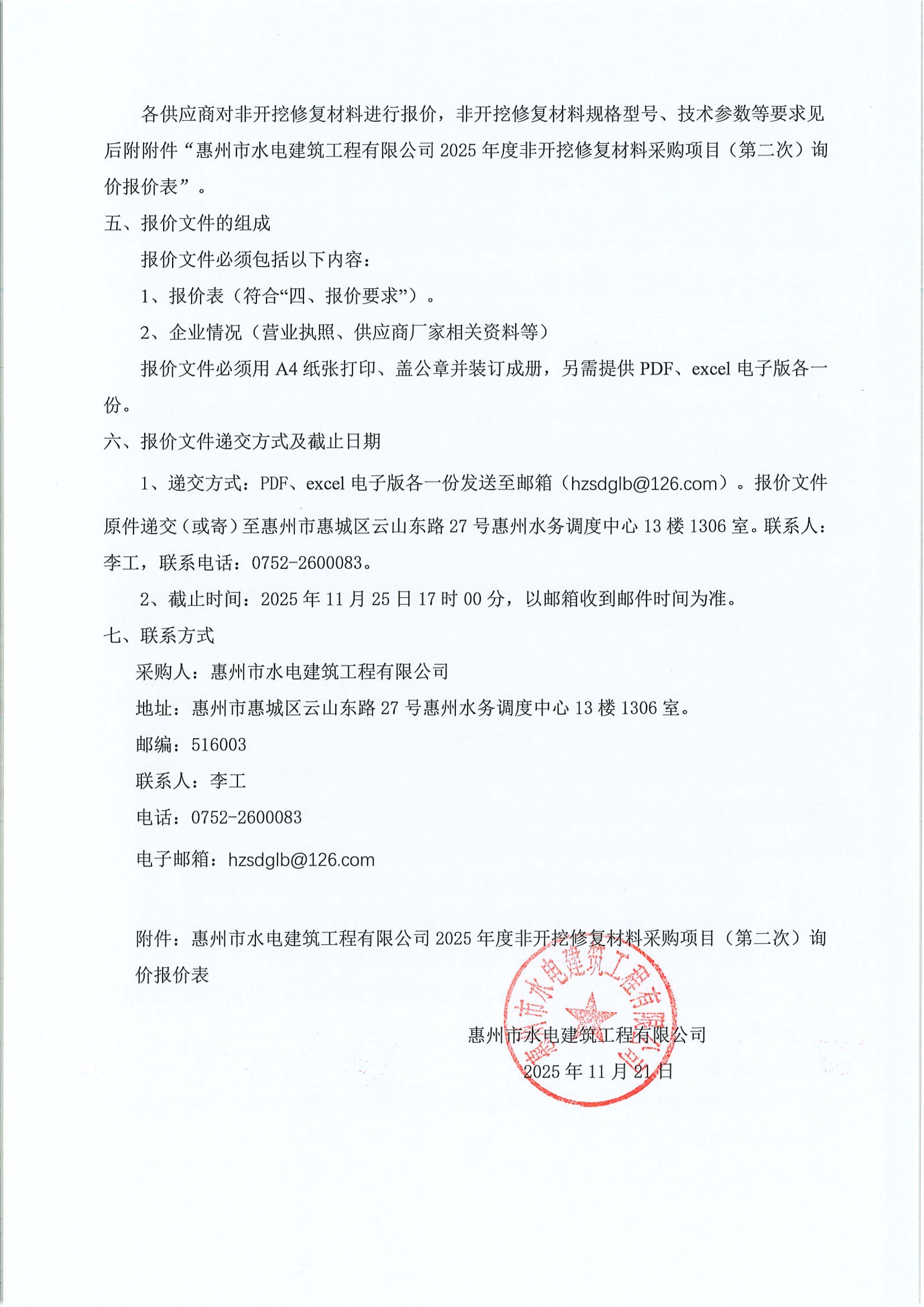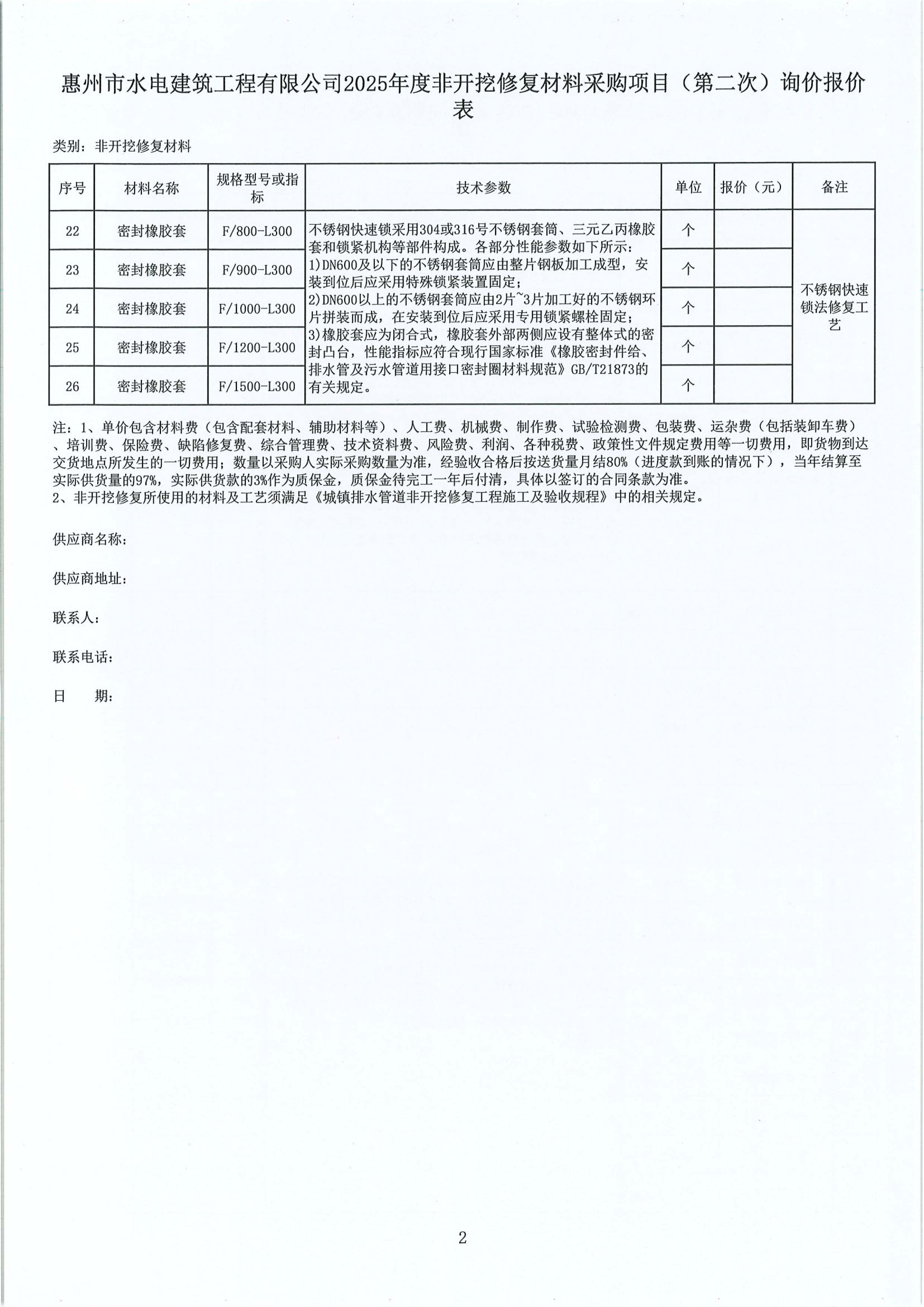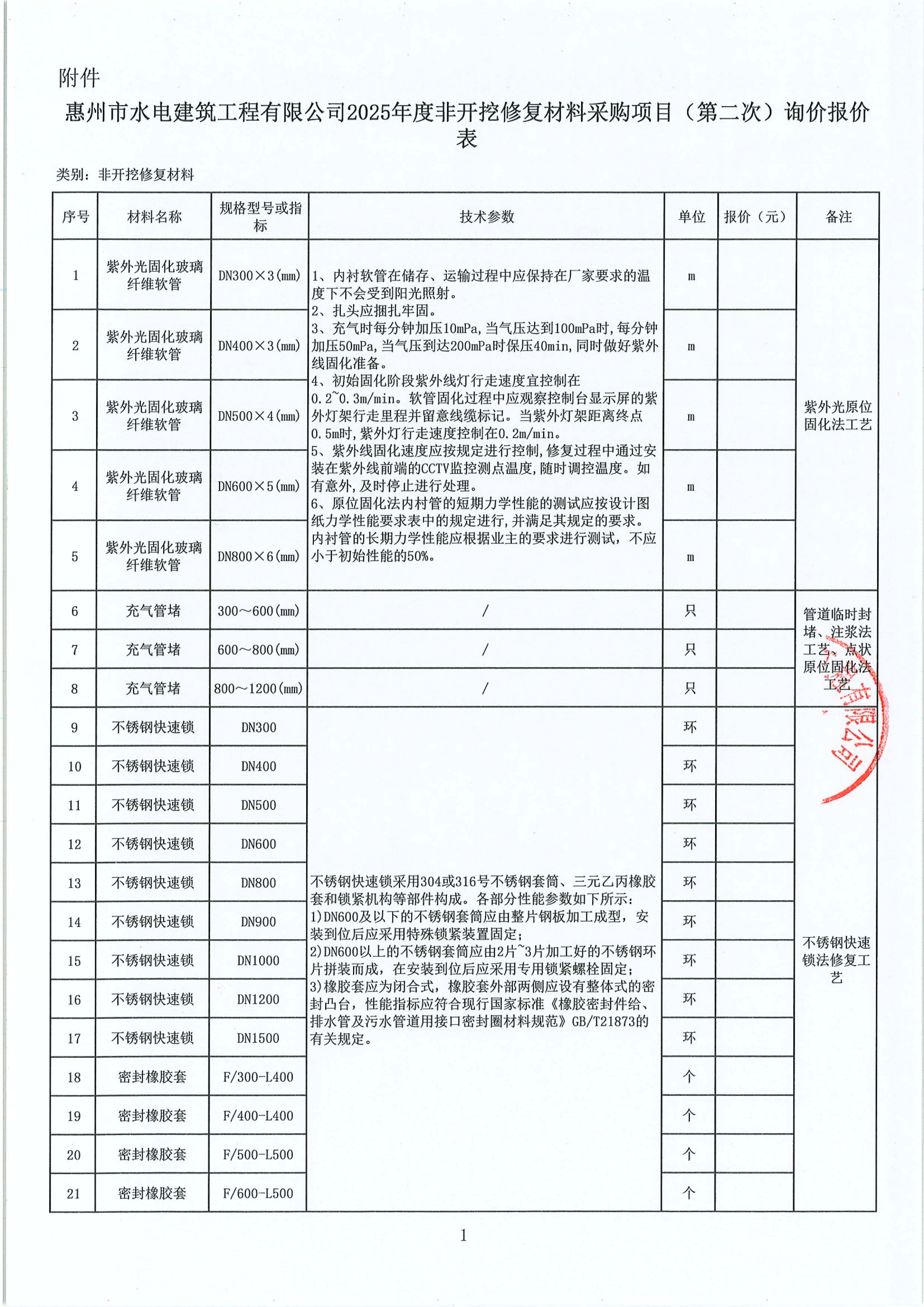 惠州市水電建筑工程有限公司2025年度非開挖修復(fù)材料采購項目(第二次)詢價公告附件: